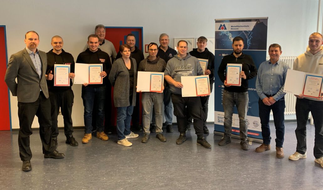 An der Metallfachschule Hessen erhielten sieben Teilnehmer am 11.02.2026 nach mehrwöchigem Lehrgang ihre Prüfungsurkunden zum Internationalen Schweißfachmann (IWS) durch den PZA-Vorsitzenden Dr. Baunack (Prüfungsausschuss) im DVS – Deutscher Verband für Schweißen und verwandte Verfahren e.V. überreicht.